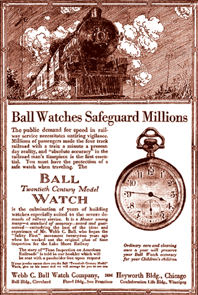In 1891, the industry hired Webb C. Ball to develop clocks that kept precise time, all the time. He imported Swiss watch movements and developed highly accurate pocket watches tested and calibrated in different temperatures and conditions to meet strict standards for railroad engineers, conductors and brakemen.