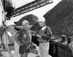 governor tours an oyster dredging operation.