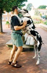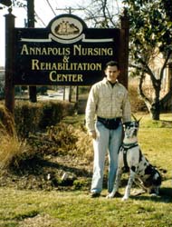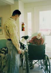 Raphael Jurkovic and Harley, a 130-pound Harlequin Great Dane, visit the patients at Annapolis Rehabilitation and Nursing Home as volunteers with Pets on Wheels.