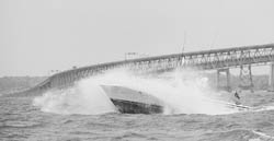 The radio crackles report of a tall ship off Bloody Point. Martin pushes the throttles forward and off we go into a wind that has built to 20mph and waves two to four feet. Up and down, whack, whack, and whack. Potholes, shouts Martin and hes right. Potholes as good or better than anything the streets of Washington, D.C. have to offer.