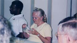 As I survey my lunch possibilities, I recognize a familiar voice coming over the speakers as that of Ray Davis, WAMU radio's bluegrass host. I'm anxious to match the face with the voice, so we take a seat as my daughter digs into her barbecue sandwich. Davis announces the next act, hometown boys Good Deale Bluegrass. Tim Finch and Mark Delaney show off some lightning fast pickin' as they team up with mandolin and banjo for a piece called "Alabama Jubilee." Still moving to the rhythm, we decide to check out the rest of the festivities.