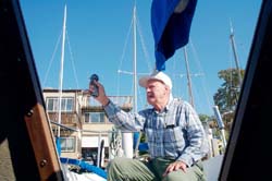 Gene, our man on the foredeck, staunchly worked to keep the butt end of the main boom from parting company with the mast. Neither John, the other crew member, nor I could render more than shouts of encouragement, since we were engaged in steering, restarting the engine and keeping the boom, the sail and ourselves from going overboard.