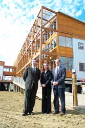 Architect Greg Mella, mechanical engineer Cindy Cogil and electrical engineer Brian Charles with the eco-friendly building they helped design for Chesapeake Bay Foundations new headquarters.