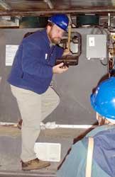 Mella stands before the Philip Merrill Environmental Center, the now-concrete brainchild of a unique ensemble effort of architects, engineers and Chesapeake Bay Foundation's own ecological thinking. Nearly complete, the center rises from a peninsular plot at the confluence of Black Walnut Creek and Chesapeake Bay, with views of Thomas Point Lighthouse and the Bay Bridge. Flanking the facility are wetland meadows and a patch of forest; out front is a swath of open, sandy beach.