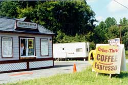 Along that two-lane stretch of General's Highway that winds its wooded way from Annapolis to Crownsville, a sign with a big yellow coffee cup looms like a fabulous mirage. Next to it, a fairylike cottage cranks out a full array of coffee drinks, from a straight eight-ouncer of joe to an iced vanilla mocha frappe.