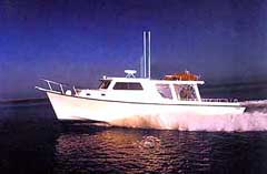 Imagine, if you will, a boat. A charter boat, powered by two 600-horsepower Caterpillar turbo motors with a 25-knot cruising speed. A really big charter boat with a full galley (microwave, refrigerator and sink) plus a full bath, below-deck bunks, global positio ning system, 48-mile radar, shore power, auxiliary generator, am/fm stereo and other nice touches stuffed into a hull 46 feet long with a 15-foot, six-inch beam and a three-foot, five-inch draft. Enough boat that the Coast Guard certifies it for 46 passengers.