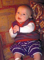 Three-month-old Jack Knoll is quite a hit in this stylish V-neck wool vest, hand knitted by his loving Grandmother Sandra Martin, who tells us: