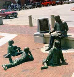 Sitting at the corner of City Dock where runabouts now jockey for mooring space is Annapolis newest statue (installed December 7, 1999). Surrounded by the bustling City Dock of present, a bronze-cast Alex Haley has eyes on the past, looking beyond the harbor while reading the story of Kunta Kinte to a trio of statue children gathered at his feet.