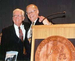 2001 Contenders: Former Democratic mayor Al Hopkins and current Republican mayor Dean Johnson were all smiles and pats on the back at Johnsons innauguration a little less than four years ago.