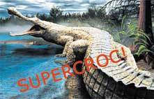 | SuperCroc meets paleontologist Paul Sereno (above), plus an artists drawing of what SuperCroc probably looked like alive (above right). |