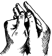 - Bring the right hand over to the left until the tops of the thumbs touch.