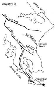 Follow Forest Drive east to Bay Ridge Road; turn right on Arundel on the Bay Road and continue to Thomas Point Road, driving slowly through the small neighborhoods.