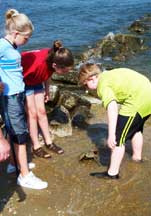 Two were dead by the time two dozen fifth-graders from Edgewater and Mayo elementary schools emerged from the woods. The kids were invited to the private beach by Turkey Point residents Brenda DeLalla and Sharyn Vogel, and led by Sharon Solberg, who warned them to watch out for buried crabs.