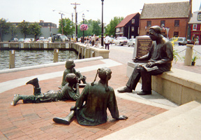 Clearly, Blackshear and all who worked with him and before him prevailed. Over two and a half years, Alex Haley has become a familiar presence at Annapolis City Dock, 45 miles south of the Mason-Dixon line. Brown-baggers sit with him to eat lunch; tourists pose for pictures at his side. With his trio of listening kids, Alex is such a friendly presence that its easy to forget that he sits in our midst to memorialize the spot where his forefather Kunta Kinte was sold into slavery.