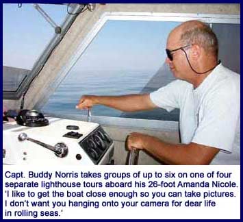 This summer, we were again feeling an itch to get out on the water when I found in these very pages Capt. Buddy Norris and his Lighthouse Legacy Charters. Norris grew up around Chesapeake Bay and its lighthouses. He photographs them, tells stories about them and has even slept in a couple of them as a youngster. Now he takes from two to six folks on his 26-foot diesel inboard, Amanda Nicole, on one of four separate lighthouse tours.