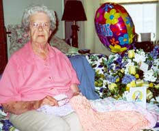 | Project Linus blanketeer Katherine Lucas, of St. Leonard, with her 100th blanket, the 1,000th for Project Linus Southern Maryland. |