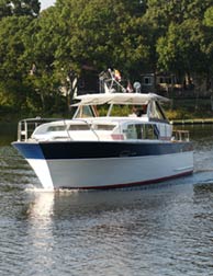 Heading for home after a day on the Bay, the Constellation moves slowly along at 10 knots. Fishing boats, ski boats and cigarette boats race by. Bobbing gently in their wakes, the Constellation has no need to hurry the sunset or to rush the tide.