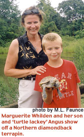 Just a few days after her job was abolished at Marylands Department of Natural Resources, Marguerite Whilden and her terrapins set out on their own with a little help from her friends, son and turtle lackey Angus and longtime volunteer Tom Newquist.