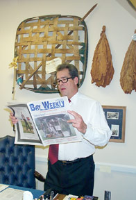 Next to an old-fashioned tobacco basket and hands of dried, high-grade, Maryland-grown leaves displayed the way theyd be at a county fair, George W. Owings Jr. who represented Calvert County in the House of Delegates in his day strides through his tobacco fields in half-century old photos. Louis Goldstein, the senior Owings contemporary in the House and the politician we knew as Mr. Maryland smiles from the bookshelf.