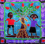 To bring the idea to flower, the American artist taught the technique called batik, using wax as a dye repellent. White shapes are created before adding color, so the images appear to be outlined in white. The women use non-toxic, permanent dyes to illustrate scenes from their everyday lives and culture: birds, trees, leaves, vines, village houses, women carrying baskets on their heads, stars and flowers. A decorative border envelops these images, offering a finished appearance.