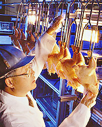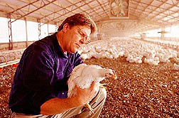 Take McDonalds restaurant. To make those independent operators responsible for the behavior of McDonalds, or to make McDonalds responsible for the behavior of its independent operators, is ludicrous, said Satterfield. It is beyond the scope of law. It just didnt make sense. In the end reason prevailed. When the governor, whose campaign received a $150,000 contribution from the poultry industry, made the announcement, he added that he plans to develop innovative solutions that clean up the Chesapeake Bay while allowing chicken processors and farmers to earn a living without excessive government intrusion. Without excessive government intrusion, the poultry industry on the Eastern Shore and across the nation runs as a near monopoly. Perdue and a few other poultry companies dictate Eastern Shore farm policy and practices. They tell farmers how much poultry to grow, when theyll pick it up and how much theyll pay for it. There is nothing new or unusual in this way of business. Indeed, Mr. Perdue would be negligent in the eyes of his shareholders if he didnt do all in his power to increase share price and company revenues. Brian Barnes, who with his father runs four houses on the Upper Shore, says, Youve got to admire him. Hes a hell of a businessman. He doesnt miss a penny if he can squeeze it out. For example, farmers say, Perdue has begun buying surplus manure, but for less than a farmer can get from another farmer. The twist is that farmers arent buying from each other anymore; they are only buying from Perdue because, thanks to its buying power, it can turn around and sell more cheaply. Perdues Tita Cherrier sees it differently. In fact, she says, Perdue pays nothing at all, but provides the service of removing the manure from the farm premises free of charge. As part of its AgriRecycle program, Perdue converts this manure into fertilizer pellets and sells it across the country. As Barnes tells it, Perdues recent foray into the manure business is just its latest move to dominate agriculture on the Eastern Shore. Bound for the Table As we drove away from Charlies chicken farm in the dead of the March night, we started to see what looked like flurries of snow. Speeding up, we saw that the flakes had their source not in the clouds but in the loaded tractor-trailer up the road. Bound for Salisbury, these birds were now seeing the sky, dark as it was, for the first time in their lives. Having escaped bird flu, they were due for dinner. At the next intersection, a truck carrying the fate of the Eastern Shore banked off to the left, its flurry of feathers coating the road in its wake. |