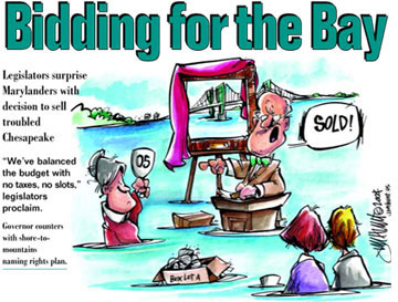 In a stunning development that caught Marylanders, the federal government and the environmental community off guard, the Maryland Legislature voted in secret session March 27 to authorize the state to sell Chesapeake Bay.