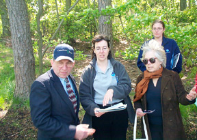 | Anne Pearson, front right, guides Congressman Wayne Gilchrest, NOAAs Alison Ward-Maksym, center, and Shannon Walla Sprague along a trail shored up against erosion at Annapolis Truxtun Park. |