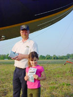 Six-year-old Annabel Thompson visited the Spirit of Goodyear and crewman Robert Shofuer while the blimp was tethered in Edgewater last week. |