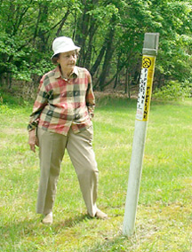 Bay Weekly followed the line, marked by yellow PCV standpipes, to the home of retired school teacher and counselor Phyllis Johnson. Johnson lives on Broomes Island Road, a quarter of the way up and across the county from Cove Point. From her hayfields, the 25-foot-wide mowed path snakes its way to the Patuxent River and slips under water.