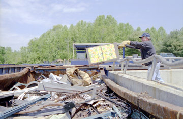 Their destination is an elaborate scene with enormous compactors lining the one-time landfill, now capped, fenced, gated and transformed into a grassy hill complete with occasional deer. Nowadays, you dont drive up a dirt track and toss your garbage into piles. You sort your trash into seperated bins huge metal compactors for household garbage and non-recyclables; containers, ready to be hauled elsewhere on the back of tractor trailers, for everything from metal to wood to old tires to construction debris. Theres a pile behind an outbuilding for brush and a steel container for rubble. There are seperated recylcing containers for metals, plastics and glass, another for paper and another for corrugated cardboard. There are even tanks, housed in a shed, for oil and antifreeze along with a drop-off for old batteries.