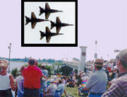 The aerial acrobatics were breathless, especially for a couple of mallards sufficiently distressed by all the commotion that they took off in a high flight only to find things even more confusing and frightening when four blue and gold F/A-18 hornets blasted below them in a thundering low pass over the bridge. Ill wager those ducks didnt set their wings for a landing until they were over the marshes of the Great Lakes.