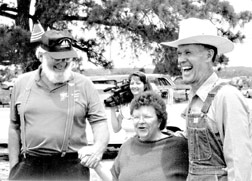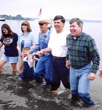 | Gov. Robert Ehrlich, second from right, and State Sen. Roy Dyson, far right, joined Bernie Fowler at last years Patuxent River wade-in |