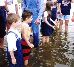 | Third graders from St. Leonard School release turtles into the Patuxent before last years wade-in. |