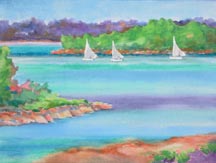 The sun is setting, and the races are ending. Depending on the winds and the course, colorful spinnakers may be flying.