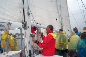 Forever a teacher, Kaye explains the boats every move with the patience learned explaining music theory to fourth graders. He hands over the helm to kids or adults. He allows visitors to raise sails and to help run the schooner.