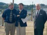 Gov. Robert Ehrlich, center, joined state Senate president Mike Miller, right, and town councilman Bruce Wahl to unveil plans for a new trail along the old route of the Chesapeake Beach Railway. |
