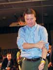 During the long wait, local and state Democrats on the campaign trail for this year or 2006 " including Congressman Ben Cardin, Sen. Barbara Mikulski, Baltimore Mayor Martin O"Malley and Montgomery County Executive Doug Duncan " took their turn at the lectern. Unusual for these events, the politicians ran out of things to say. The speakers scheduled to lead into Edwards finished their speeches at 7:20; the stage was then silent until the night"s main event.