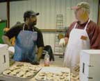 Samuel Fisher and Robert Hastings, far left, shuck oysters in preparation for the championship.