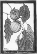 Persimmons range from the Atlantic west to East Texas and north to Ohio and Connecticut. It is in the same family as ebony. The wood is dark and very hard but has had limited commercial use because the trunks never exceed one foot in diameter. However, the persimmon tree has made at least one important contribution to industry: The wood was used for loom shuttles, which are subject to so much stress that less durable woods can not take the constant use. Persimmons are an important food source for many species of wildlife, such as bob white quail, fox, squirrel and opossum.