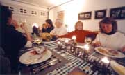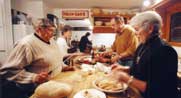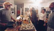 | Whitey, at left, holds court in the kitchen, assigning tasks and keeping the food coming. |