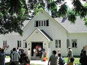 The dedication November 14 marks the end of three years of restoration. The original exterior of board and batten was exposed; then the interior was attacked.
