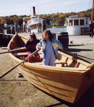 Trying to row a beached dory is hard work at Mystic Seaport, CT.