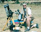 | Mr. Eclipse, Frank Espenak, above, spent hours setting up two refracting telescopes, three video cameras and nine 35mm cameras to capture the total solar eclipse of 2001 from Chisamba, Zambia. |