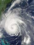 Hurricane Isabel, photographed 1.2 kilometers above the storm, sweeps up the Mid-Atlantic. |