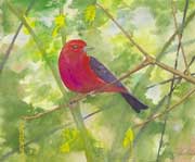 The males of the species are North America’s most brilliantly colored bird as well as loud and persistent singers, but they are not often seen. In their niche, in the tops of the trees, their movements are deliberate. The sounds they make alert you to their presence, and you will need to search and crane your neck. You should be patient.