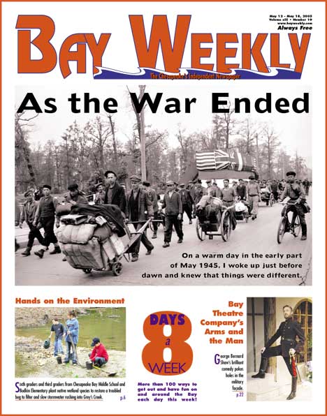 Editorial Letters to the Editor Bay Reflections EarthTalk Dr. Gouins Bay Gardener Bill Burton Weekly Crab Forecast Way Downstream Tidelog® Earth Journal 8 Days a Week Curtain Call Flickerings Free Will Astrology© News of the Weird©