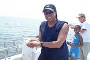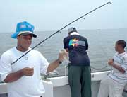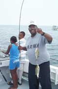 | Fish on! Fish on! shouted Mike Chambers of Baltimore not 10 seconds after dropping his line in. |