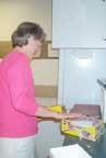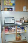 Lucy Arthur fills cabinets of the snack room at the surgical ward for veterans. During weekends and evenings, the food shops at Bethesda Naval Hospital are closed. |