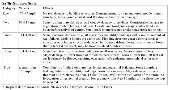 | The Saffir-Simpson scale estimates the damaging power of a storm based on winds alone. The most damaging winds of a hurricane are those along the right-hand semicircle where wind speed within the hurricane and speed of the hurricane itself (speed of motion) add together. |