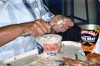 Claytons Epicure pound containers lined before the pickers tell the hierarchy of crabmeat. From top to bottom, its jumbo lump, lump, special and claw, and each crab contributes some to each pot.